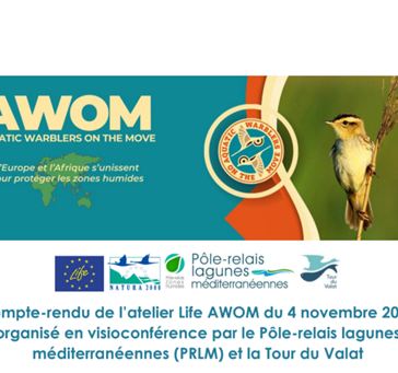On 4 November 2025, an online workshop was organised by the LIFE AWOM project partners, Pôle-relais lagunes méditerranéennes and Tour du Valat. It gathered around twenty participants, including bird ringers and site managers from around the French Mediterranean, who host or could host migrating Aquatic Warblers during their migration, as well as other partners from the Aquatic Warblers on the Move project (LIFE AWOM).