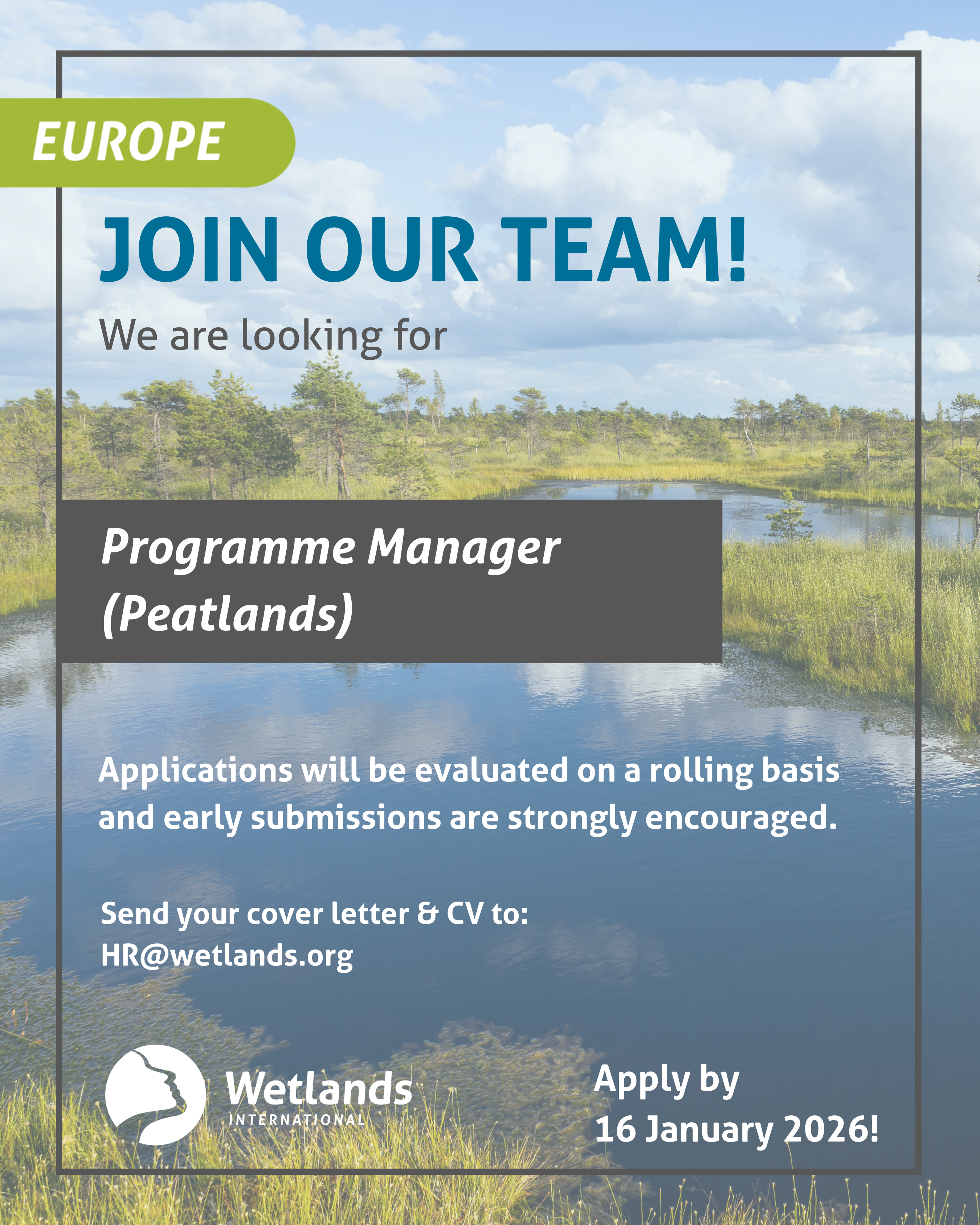 We are looking for a passionate and solutions-driven Programme Manager to lead our Peatlands Programme. In this role, you will drive the conservation and restoration of Europe’s peatlands by shaping policy, strengthening implementation and catalysing effective action on the ground. You will oversee the full peatlands portfolio—from project design and proposal development to implementation and staff management—working closely with our members, partners and Wetlands International’s global peatlands team to advance the Wetlands International Europe Strategy. A key part of the role is mobilising networks and securing sustainable funding to scale up peatland restoration across Europe.