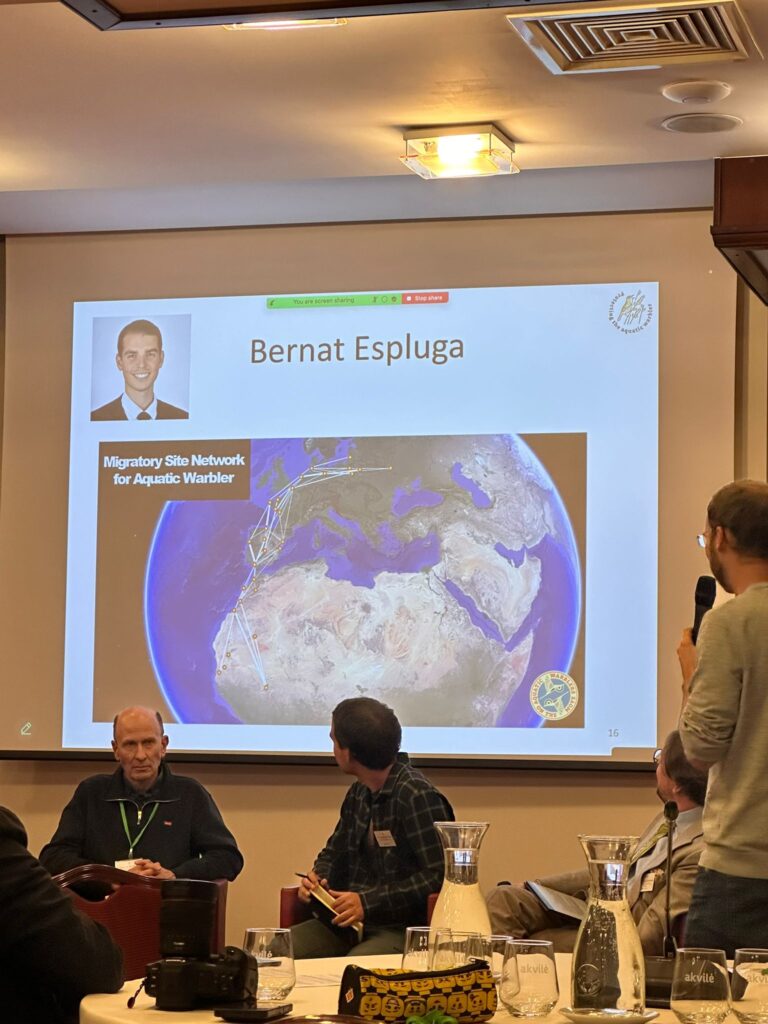 Last, but not least, Bernat Espluga from the LIFE AWOM project partner Institut Catala D’Ornitologia, who leads the Site Network activities, participated in the panel discussion, “Strategic planning for Aquatic Warbler conservation – opportunities and challenges of designing a steppingstone network of Aquatic Warbler breeding habitats”. The main outcome of this session was supported by all panelists and participants: developing a science-driven, comprehensive, coherent, and climate resilient stepping-stone network that includes protected breeding, migration and wintering sites is essential for the conservation of the Aquatic Warbler and its habitats.